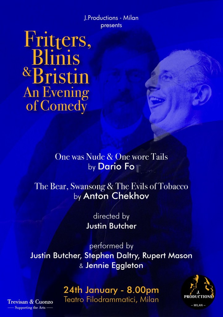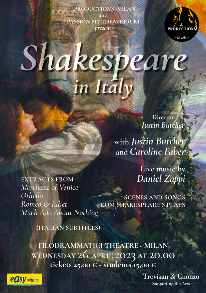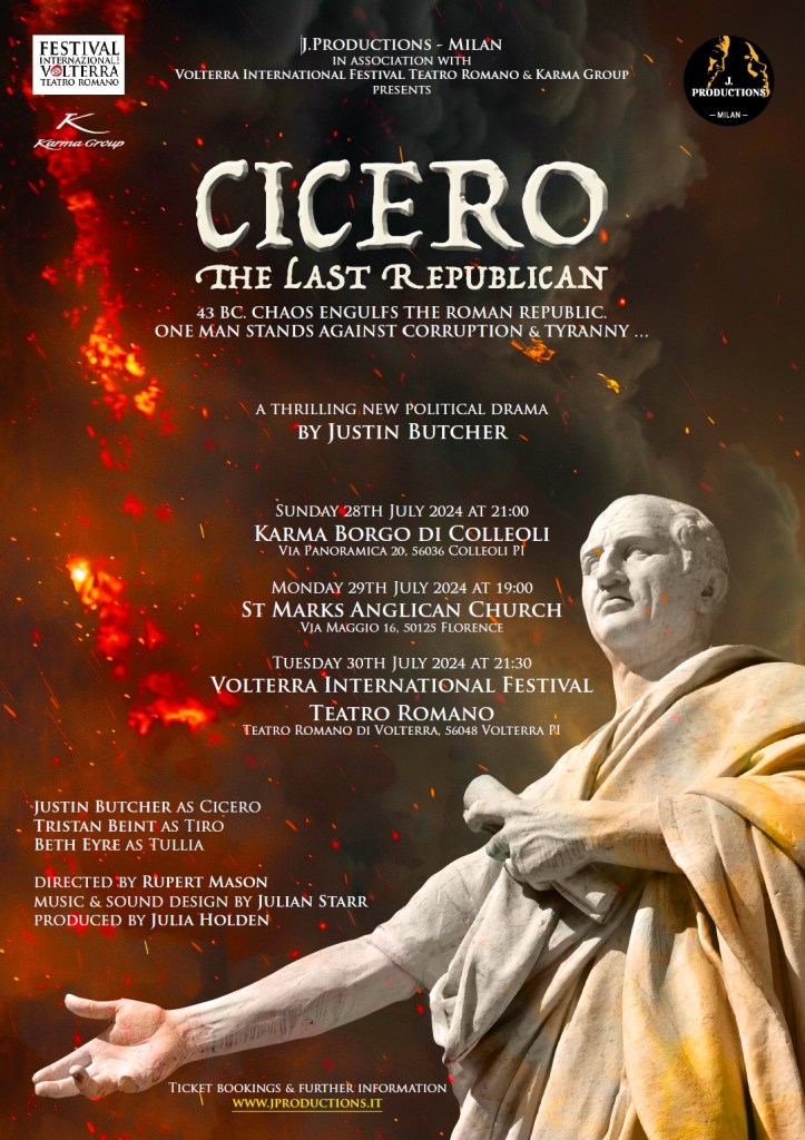 In January 2024 J. Productions brought a highly successful combination of Chekhov ‘Shorts’ and Dario Fo satirical comedy One was Nude and one Wore Tails to the Filodrammatici Theatre in Milan directed by Justin Butcher with a cast of 4 British actors and musicians. In February theatre practitioner Illona Linthwaite hosted a Workshop in Milan on British poet, Anna Wickham and writer Cicely Hamilton. In spring 2024 J.Productions toured The Devil’s Passion written and performed by Justin Butcher in seven key towns in Italy. In July J.Productions premiered Cicero – The Last Republican at the International Roman Theatre Festival in Volterra written and directed by Justin Butcher.