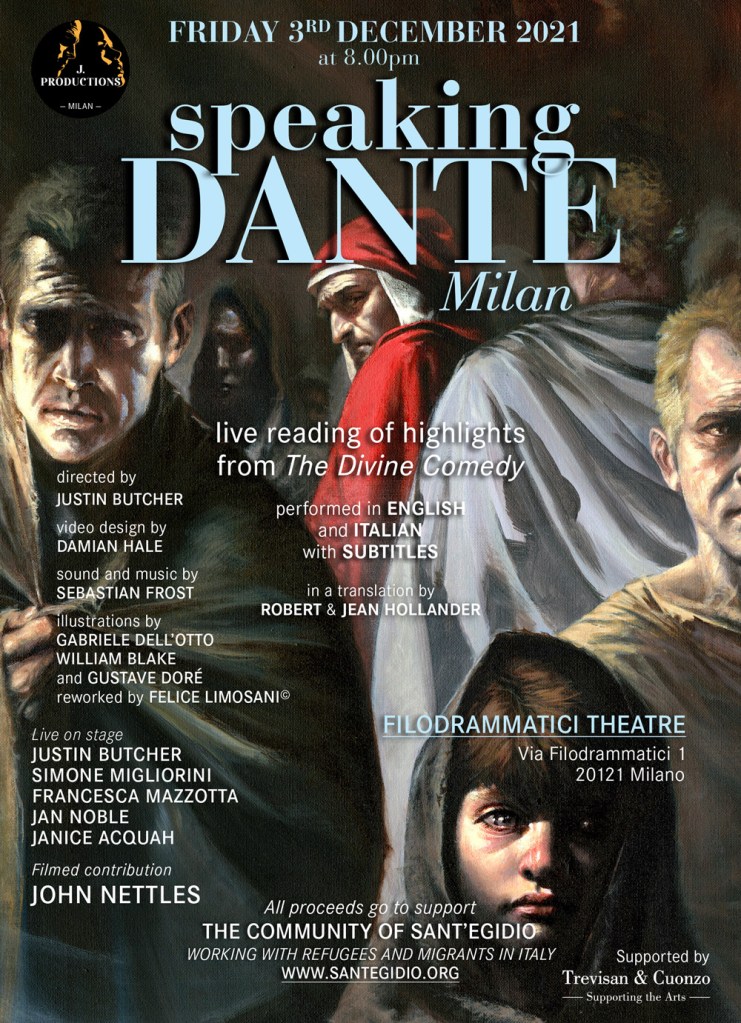 In 2021, to mark the 700th anniversary of Dante Alighieri, J. Productions organized a 24-hour marathon reading in the English language of the entire Divine Comedy at Cinema La Compagnia in central Florence including a splendid star-studded cast. In 2022 J. Productions presented Dylan Thomas’s Under Milkwood – performed as a one-man show by the acclaimed director and performer Guy Masterson at the Filodrammatici Theatre.